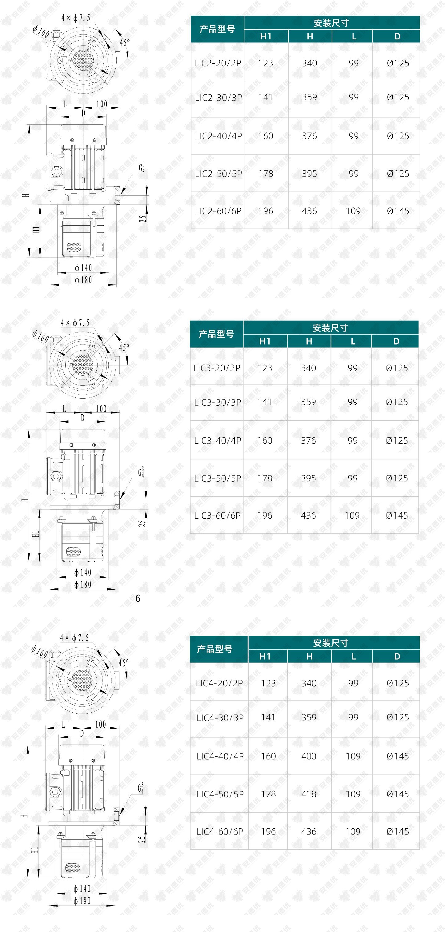 LIC系列为带集成电机的浸入式多级离心泵,本产品主要安装在水箱或容器顶部,水泵进口浸入液体中进行液体抽取和输送;为符合水箱或容器的安装深度,水泵的浸入深度可以进行定制;不同级数的浸入深度见可供产品范围。