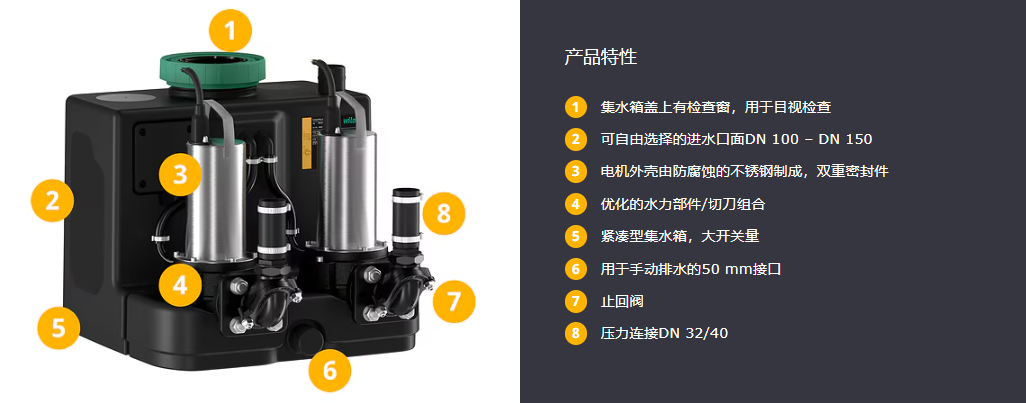 - 开关量大,水泵配备双剪切效果的径向切碎机、电机热保护和不受电网影响的警报,因此运行可靠